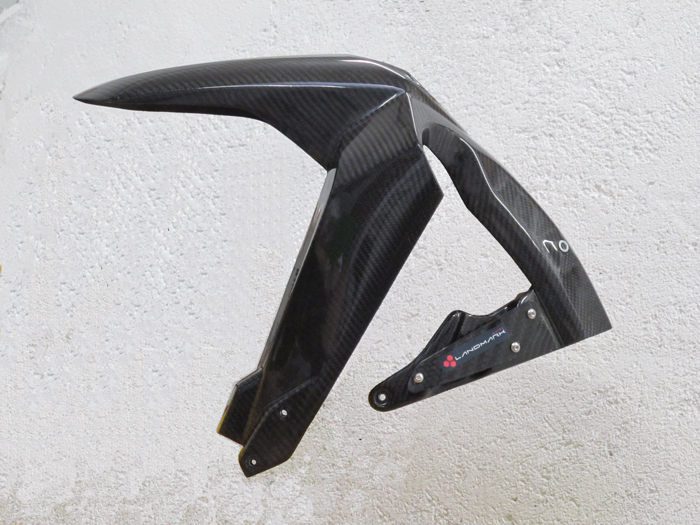 The fender is made of a composite material, carbon, Kevlar, Dyolene + epoxy resin and the molding is done under vacuum.