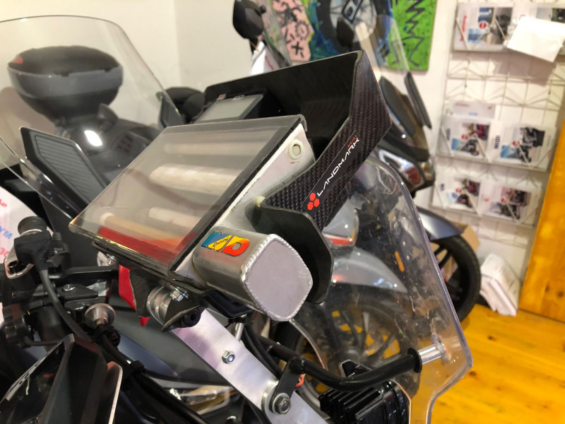 Made of Carbon / Kevlar composite + shockproof fibers, it allows to house an MD road book holder and 2 trip computer (ICO or RNS).